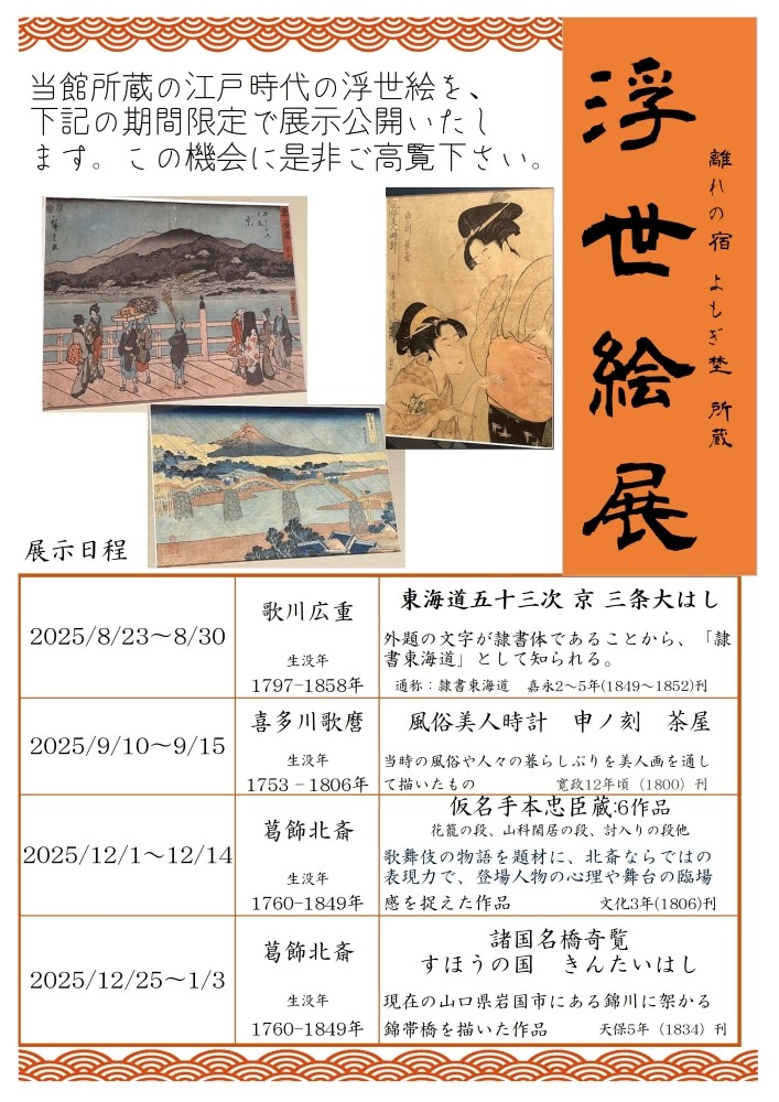 2025-08-22「歌麿」「広重」「北斎」の浮世絵を展示公開いたします!